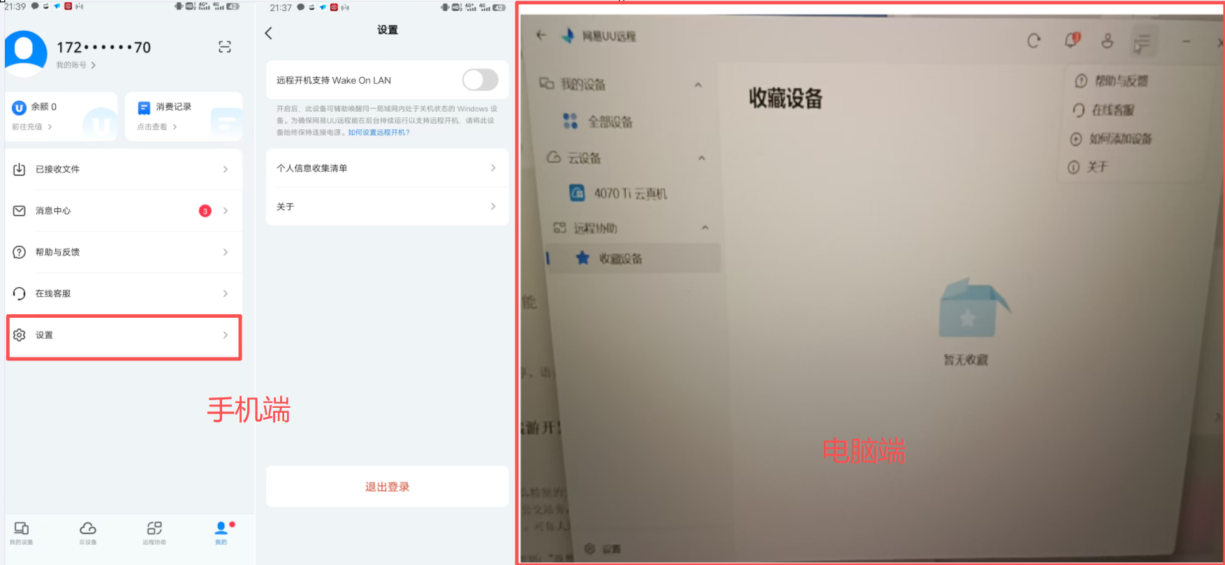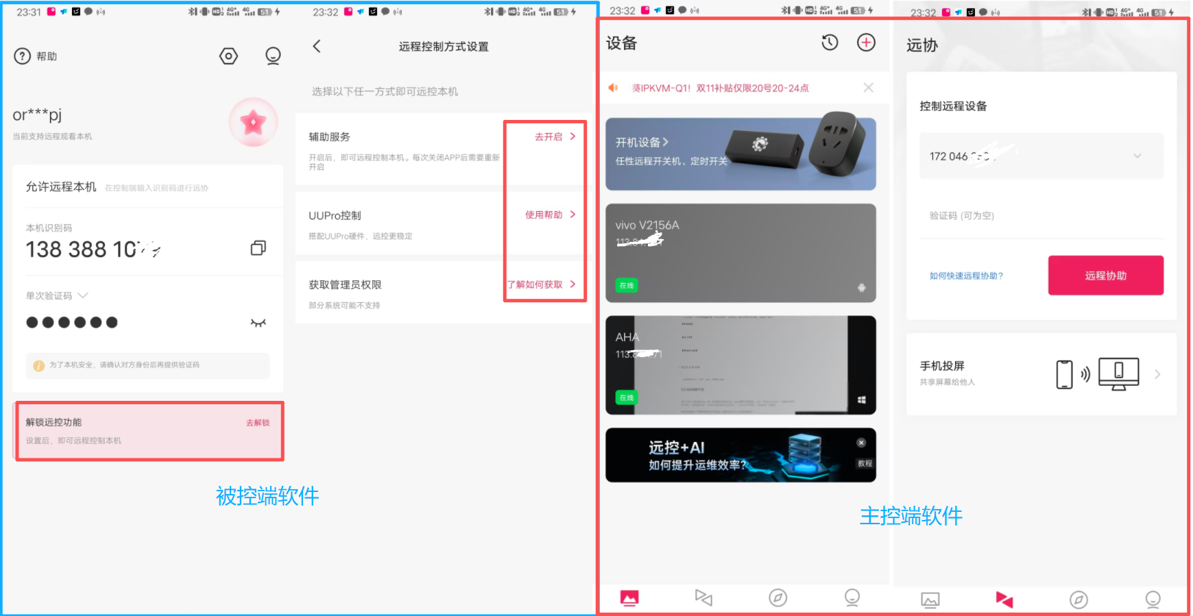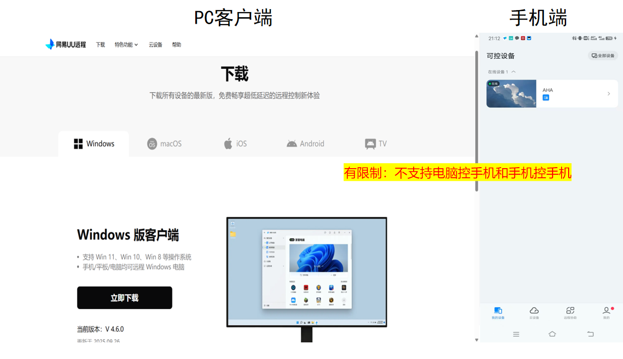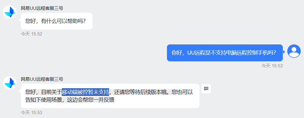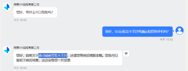 UU 远程不支持"移动端作为被控",这块采用还是"电脑端作为被控"进行相关操作吧。
