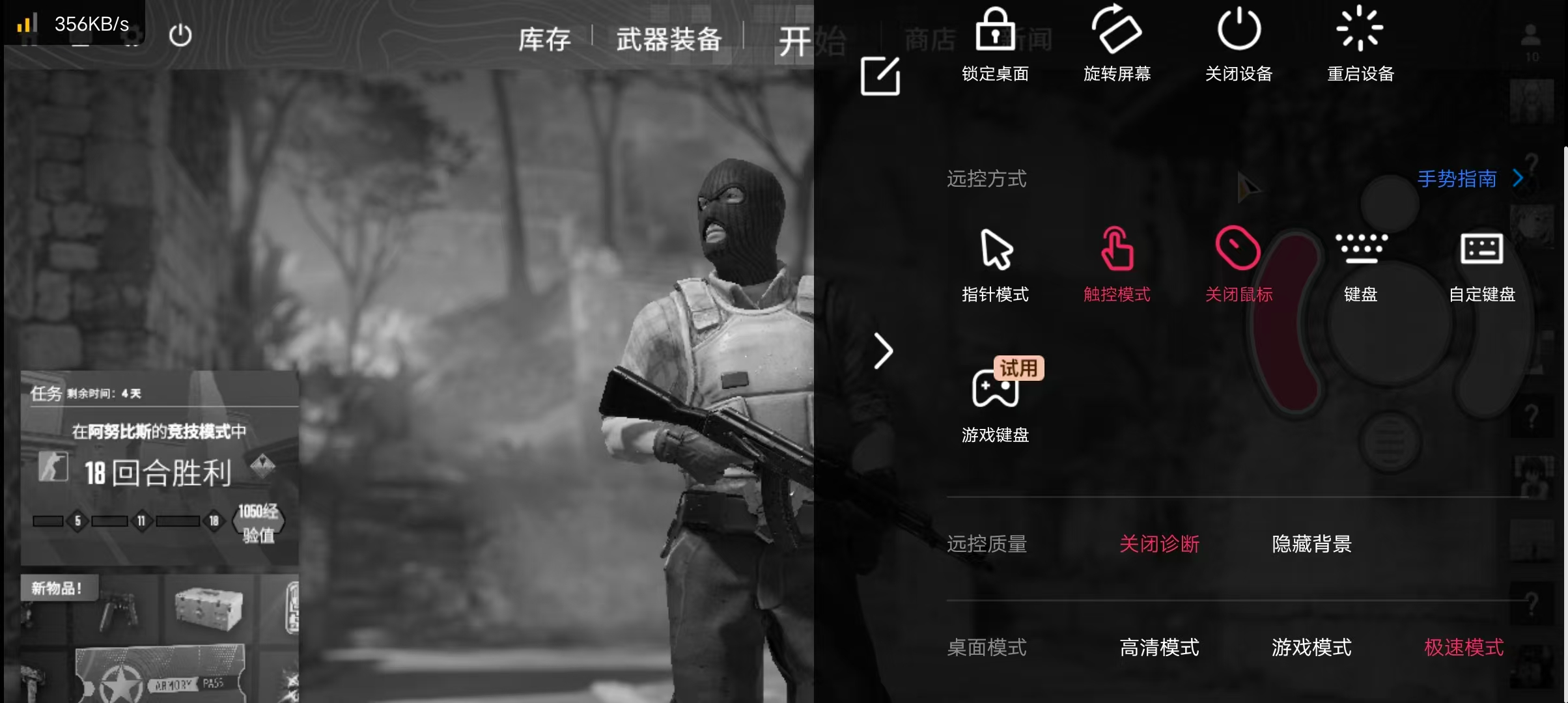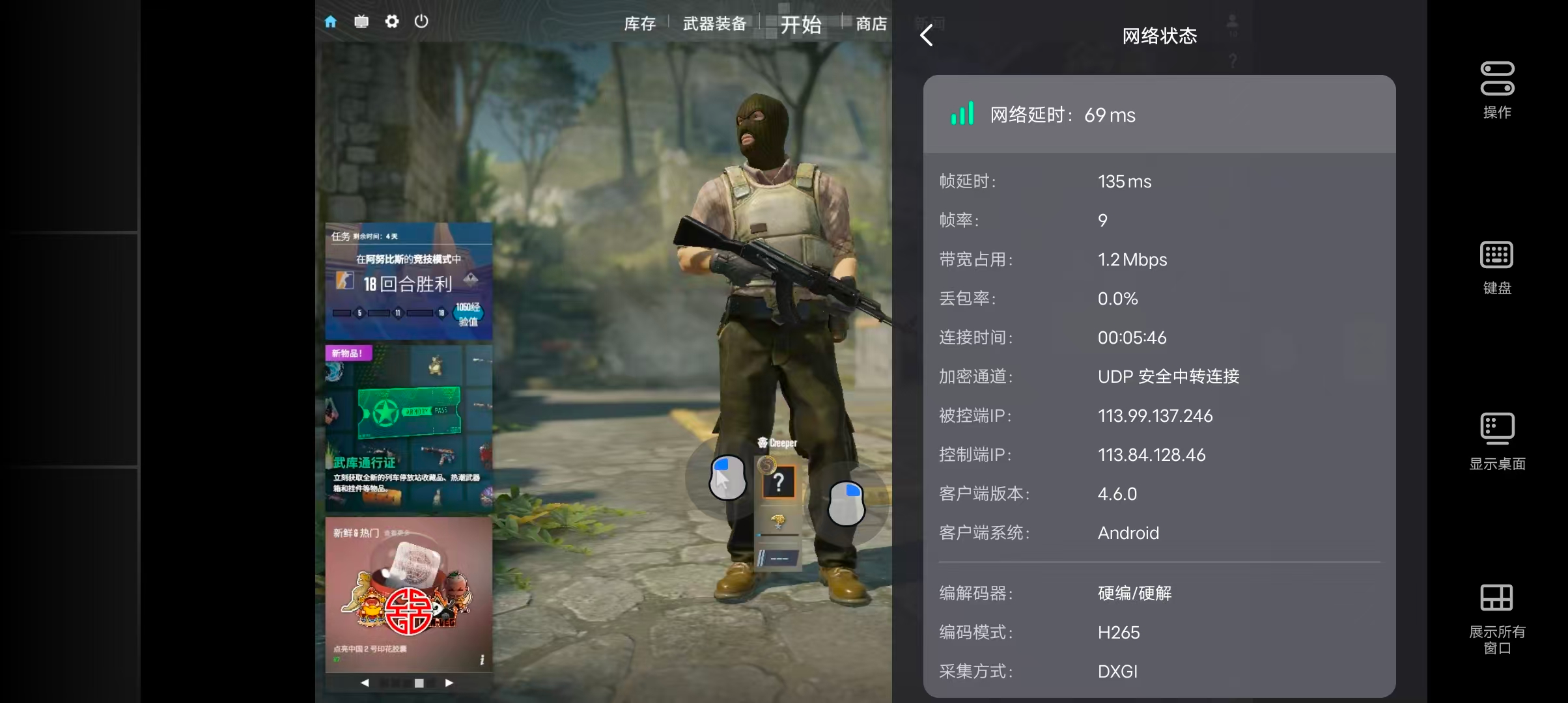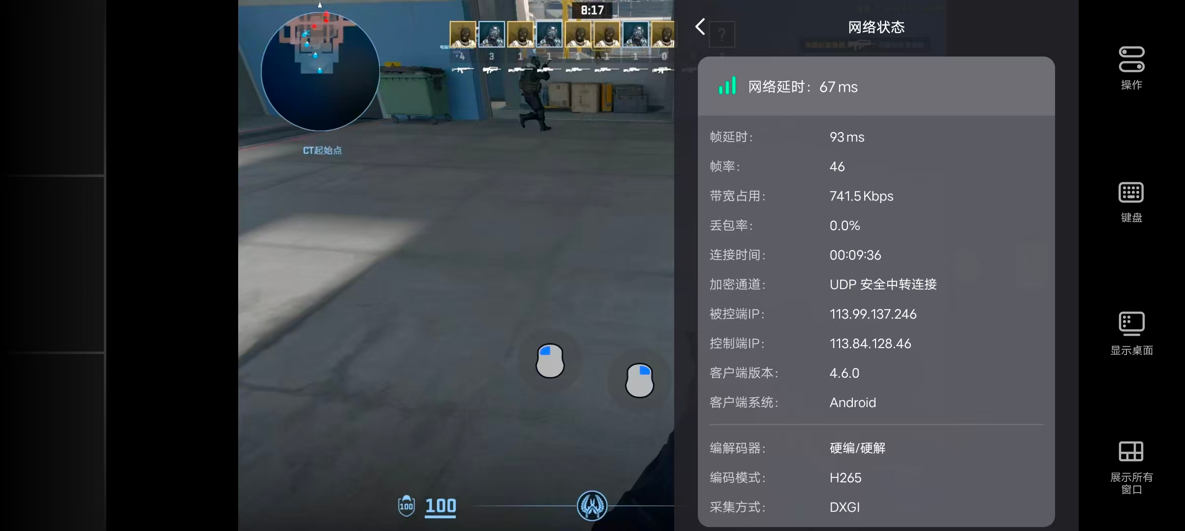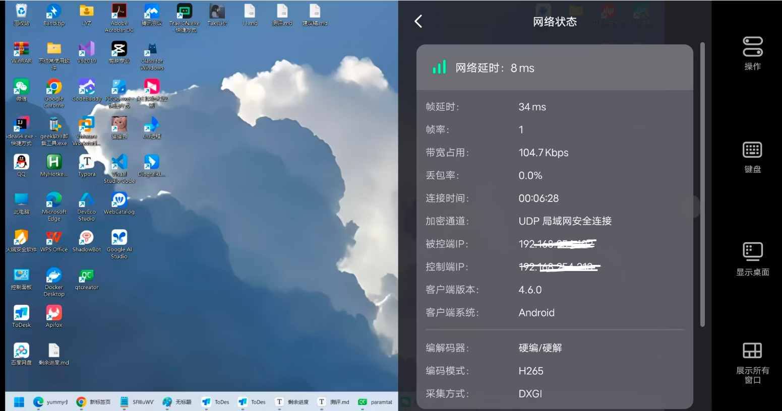 这里展示下安卓手机互控的远程界面,连接大概 2~3 秒,延迟仅 3ms,网络快的话秒速互连。