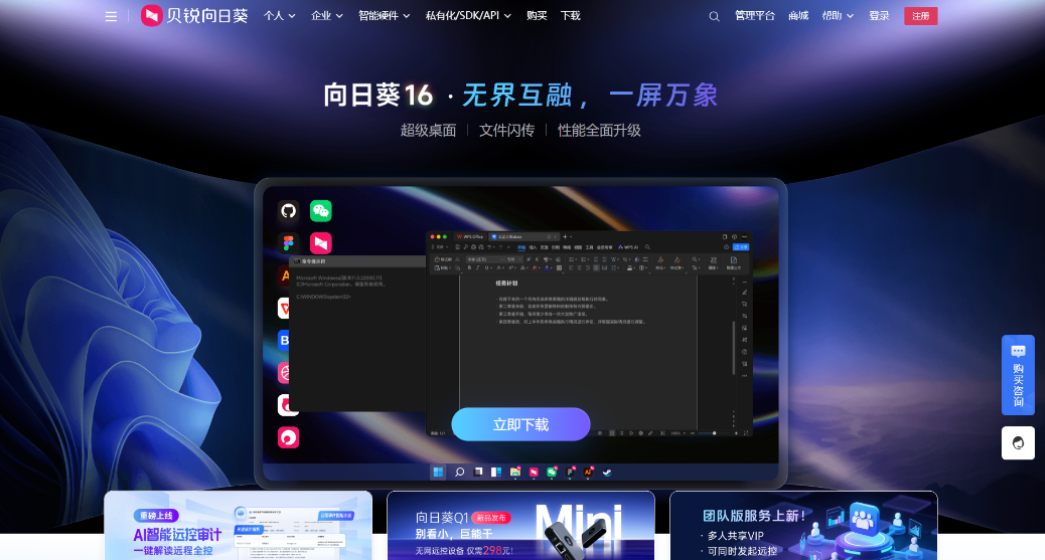 虚拟屏:会员功能,允许用户在远程控制中模拟多显示器环境,最多可扩展至 3 个虚拟屏,支持 4K 分辨率,提升多任务处理效率,适配设计创作、企业运维等场景。