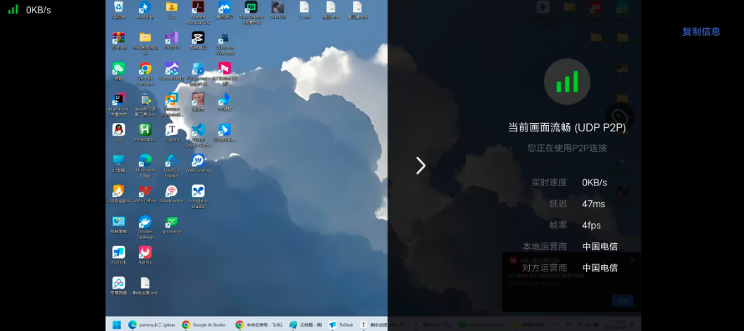 当前是正常连接下,ToDesk 运行起来是十分舒畅和稳定。