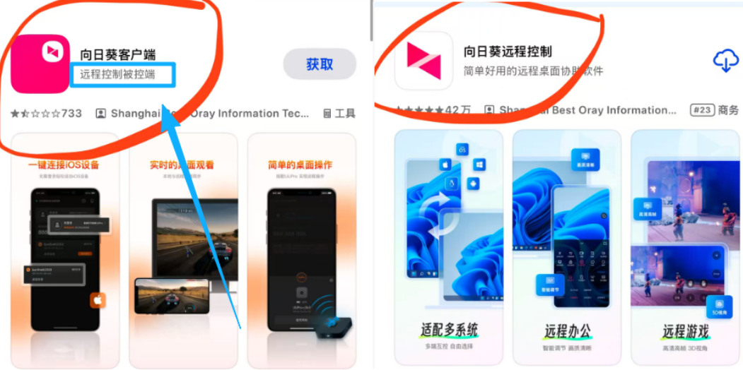下面两张图可以很清晰的看到,主控需要下载"向日葵远程控制"软件,而被控要下载"向日葵客户端"。这点我感觉设计的不是很合理,使用起来还要考虑两个软件,便捷性不是很高呀,而且应该很少人知道,我也是摸索了很久才知道......