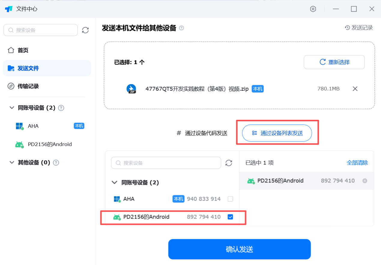 ToDesk 的【文件中心】最亮眼的地方是可以一传多台,什么意思呢?就是可以选择一个本机的文件一键勾选 5 台同账号的远程设备进行发送,并提供了"通过设备代码发送"和"通过设备列表发送"的多样化选择。这是向日葵和 UU 远程都不具备的创新功能!