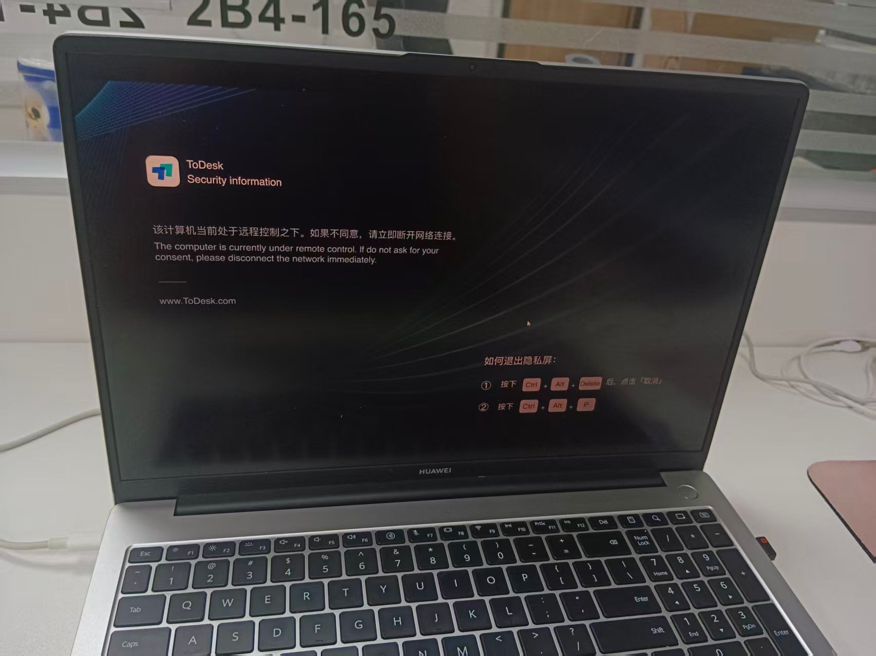 ToDesk 也提供"关闭被控显示器",是一种强隐私模式。然后,电脑这块啥也看不见了,密封性很强,如下图: