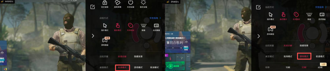 在远控过程中,可以在"远控菜单-桌面设置"中选择不同的模式,包括流畅、均衡、画质、高性能,最高可支持 4K 144 帧。虽然在画质这块不断进行修改,但是呈现的效果不是很明显。估摸只有 720p,而且可以在我流量消耗,最大 500M 的时候是十分可怕的,但是画质也没说优化到多好。