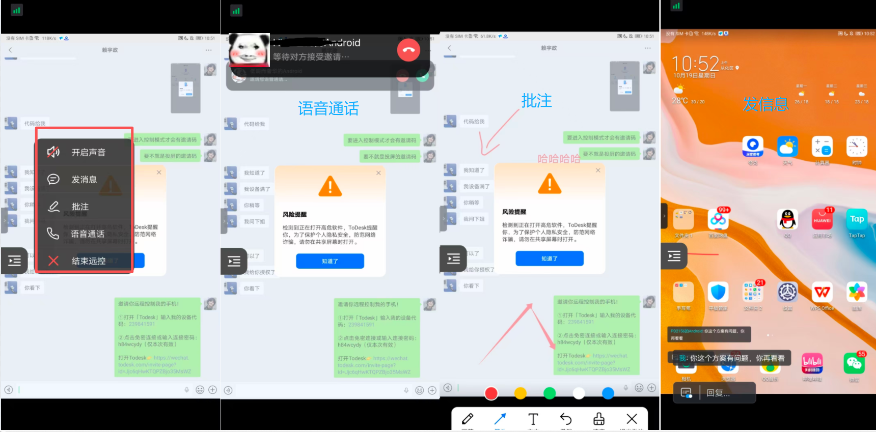 实测 ToDesk 手机互控过程中,会根据使用场景给出风险提示,保障远程安全。
