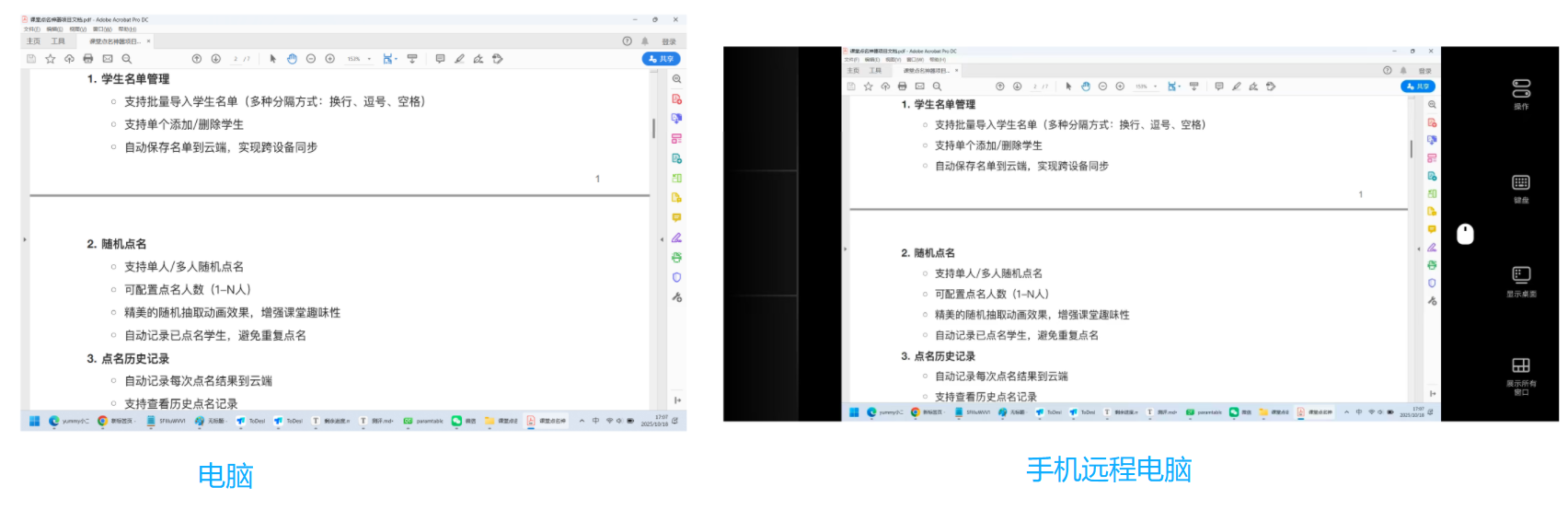 扩展屏:支持将手机、平板、笔记本等闲置设备无线扩展为电脑第二屏幕,所以这里移动端主要是作为被控使用,适配办公文档处理、设计素材对照、游戏攻略查看等多任务场景。