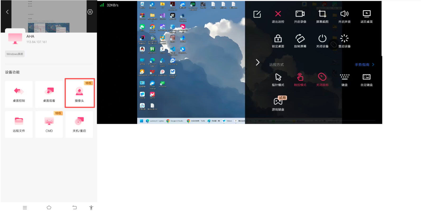 话是这样子说,但是该测评还是需要落实到位的。这里"手机连接电脑"的互动功能,也没啥看头,然后这个"摄像头"功能也是需要收费的。当作远程工具就行了,真的就当作远程工具就好了。