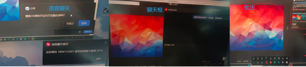 然后我们看下"双方电脑端设备"又提供啥花样。也是基础三件套,语音通话、白板、文字聊天。