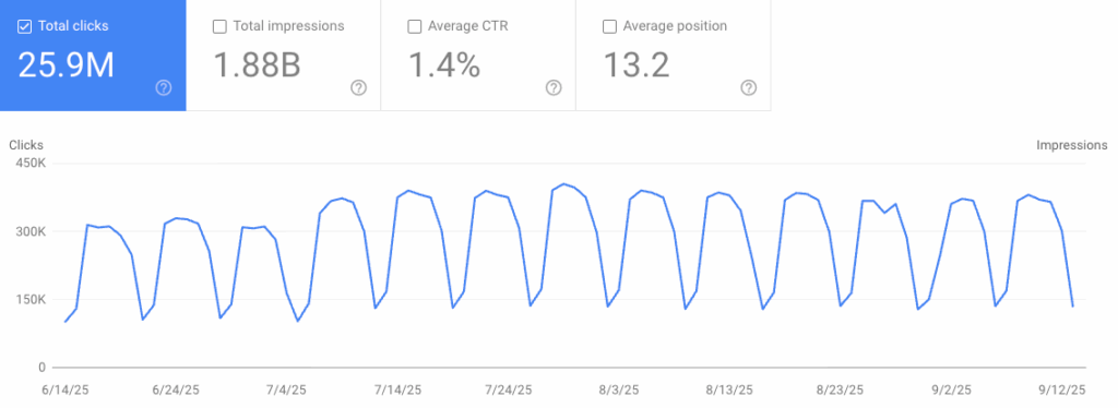 过去,许多 SEO 工具依靠 &num=100 参数,一次性抓取整整 100 条搜索结果。 这样即便你的网页排在第 99 名,只要被工具抓取到,就会在 Search Console 中记录一次“展示”。