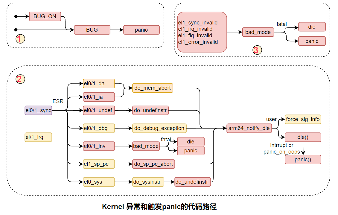 kpanic 类异常均为 kernel 软件可感知到的异常, kernel 完成 panic 流程后会由 bl31 完成一次 WarmReset,所以所有 panic 现场我们都是能够拿到 pstore log 的。