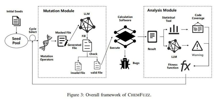 研究目的:研究者开发了一种名为 CHEMFUZZ 的自动化模糊测试框架。该框架通过利用大语言模型,旨在提升量子化学软件测试的有效性与效率,从而填补了当前研究在该领域的空白。