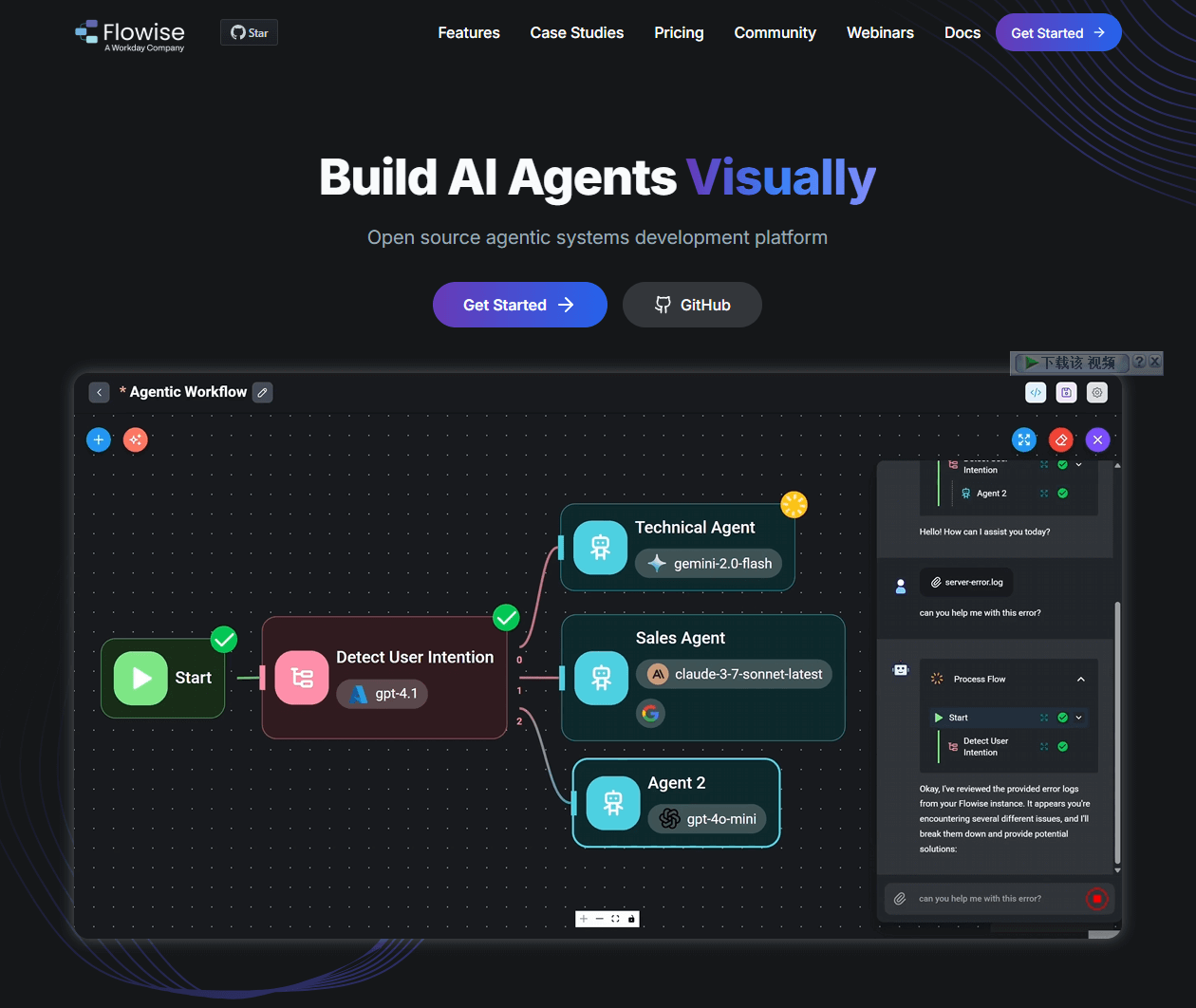 定位:基于 LangChain 的可视化 AI 流程工具,用于构建 RAG、对话式 Agent。