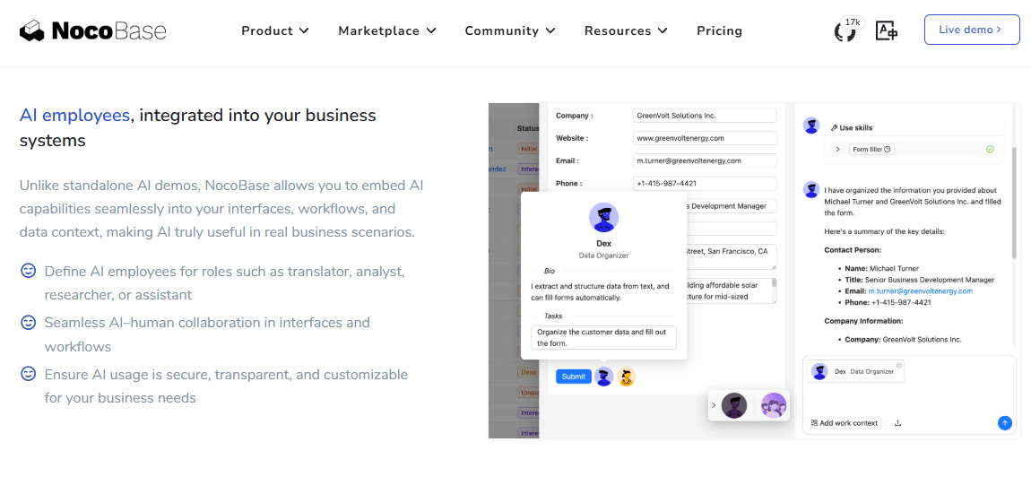 适合场景:内容管理、轻量数据仓库、团队项目表格系统。支持“对话式处理数据”,例如通过自然语言查询记录、批量生成表格内容或自动产出报表。