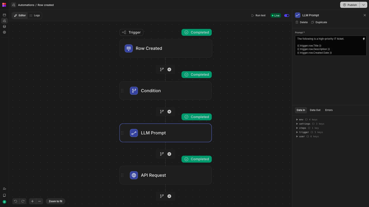 NocoDB、Teable 这类数据型工具,也开始提供 AI 自动填充、Webhook 触发、规则执行等功能。