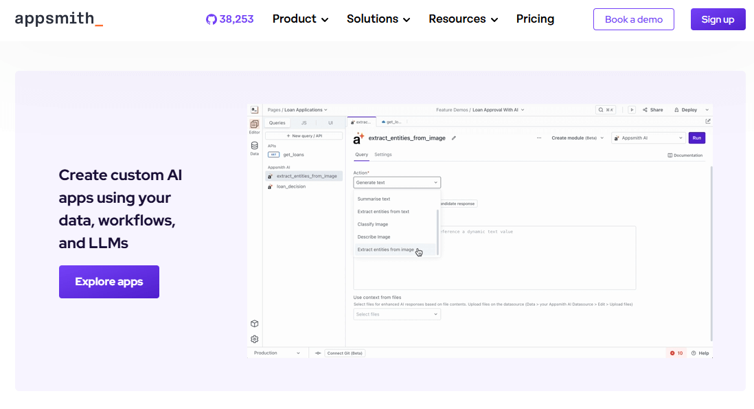 定位:开源内部工具开发平台,提供“Appsmith AI”用于自动生成 SQL、表单逻辑和页面组件配置。
