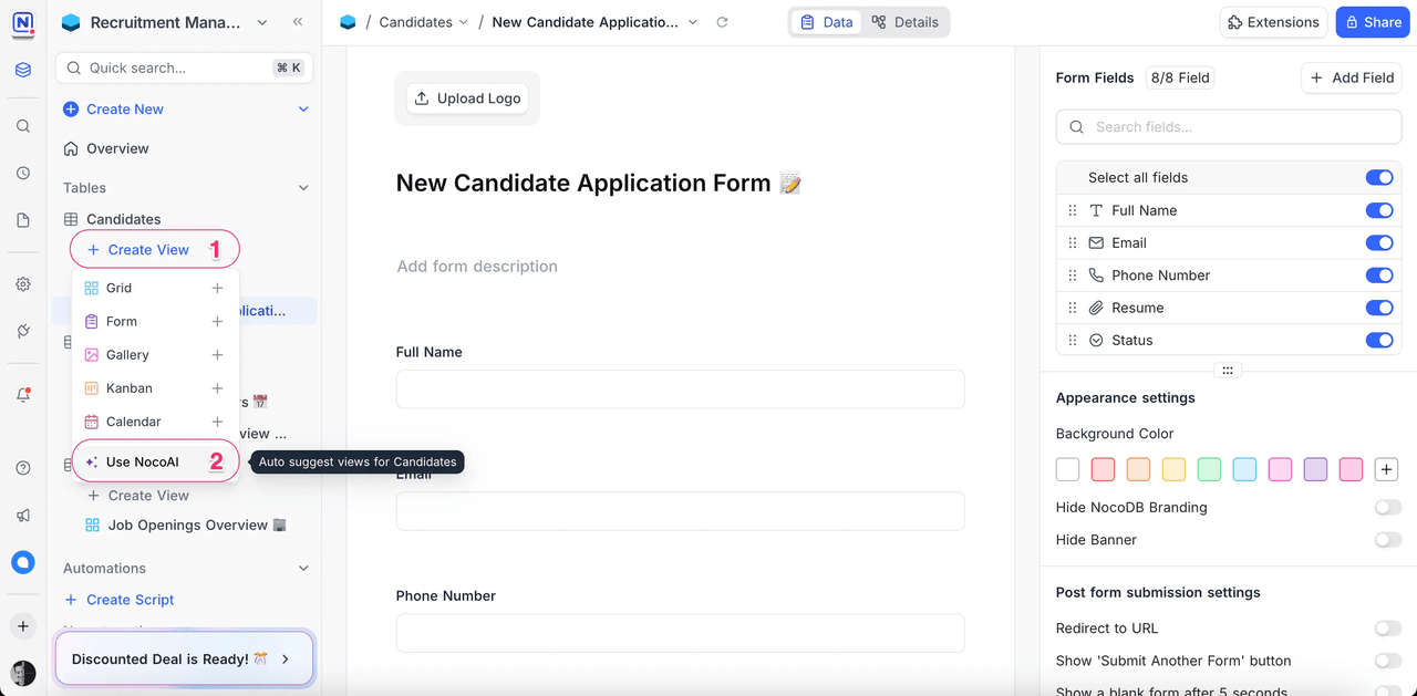 定位:用于构建自定义业务应用的平台,支持数据库建模、表单生成和简单流程,同时提供 AI 字段与文本生成能力。