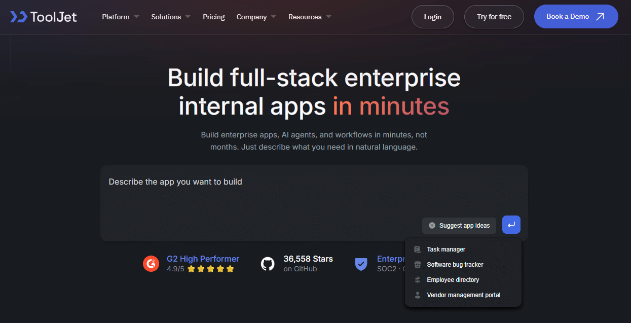 定位:面向企业内部应用的低代码工具,强调“AI Copilot + 可视化 UI + API 连接”。