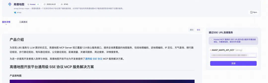 在 ModelScope MCP 广场,选择一个 MCP 服务(比如高德地图)