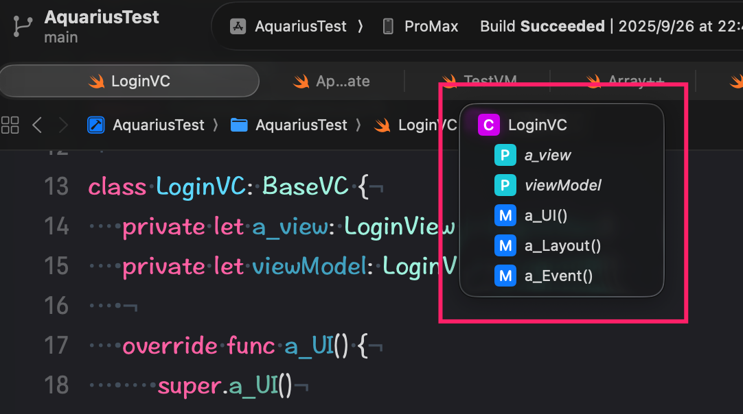 整体的 Swift 文件具备明显的分层结构将添加 UI 控件的所有代码都放到了 a_UI 中,将 UI 控件的布局方法都放到了 a_Layout 中,将所有的事件都放到了 a_Event 中。