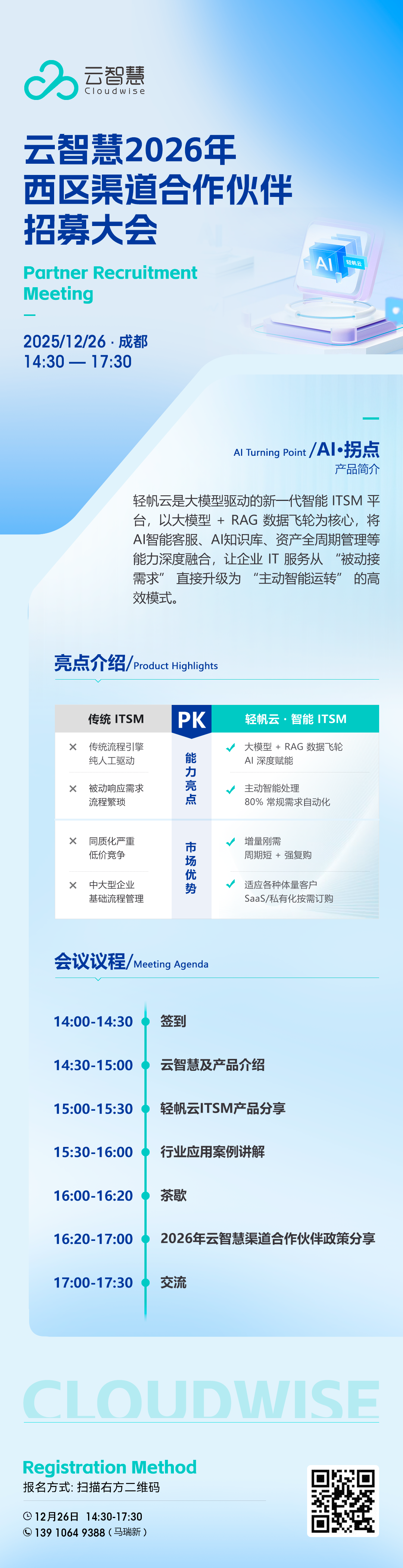 报名启动|轻帆云 ITSM,西区渠道合作伙伴活动火爆报名中!抢占 AI 运维新风口!