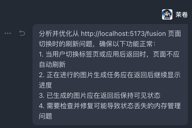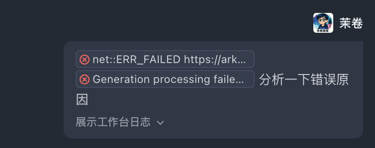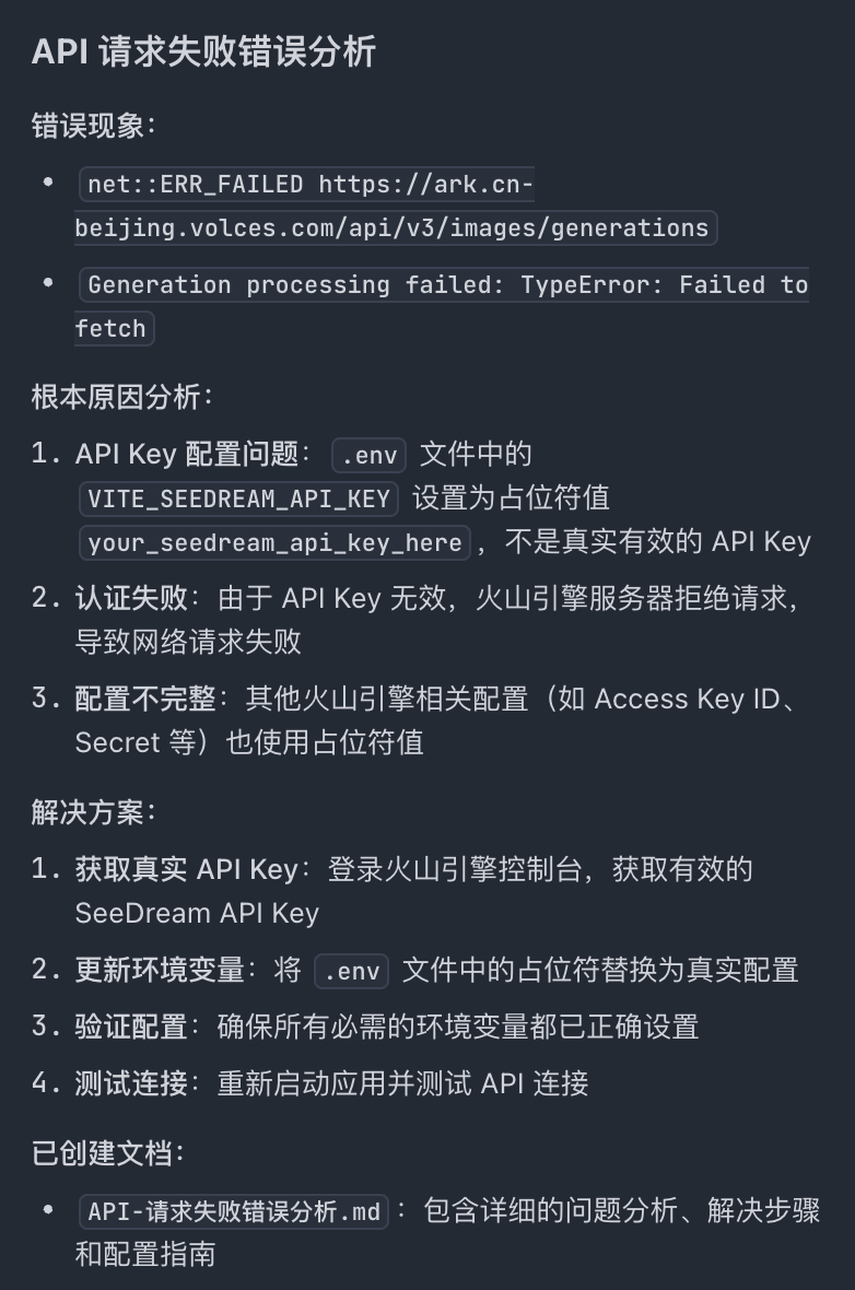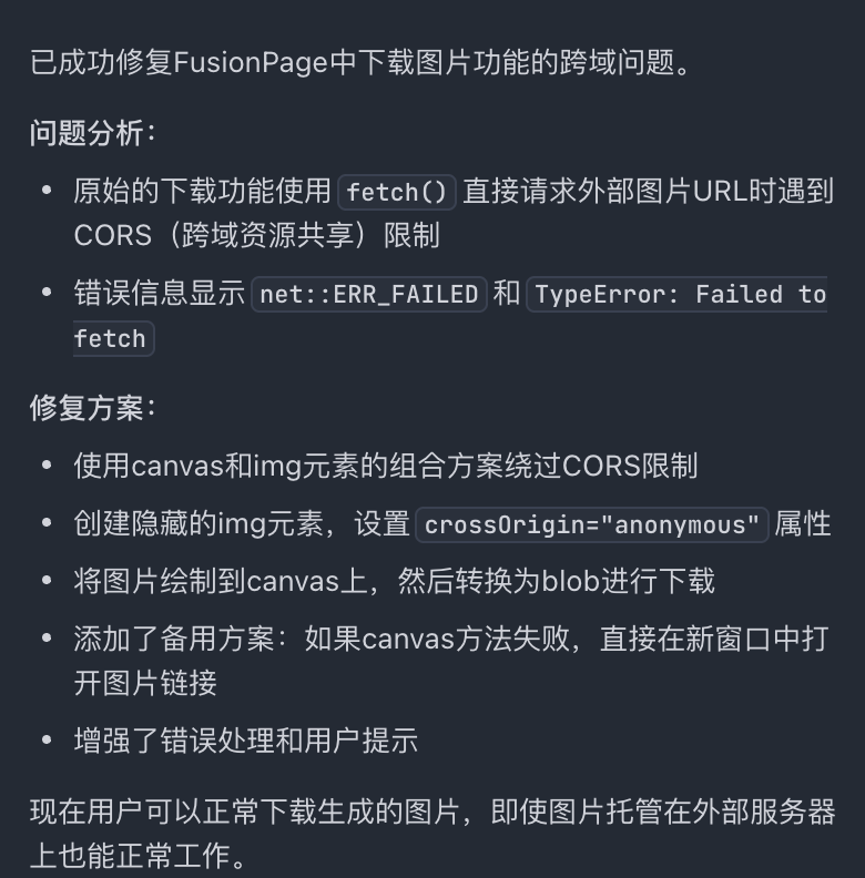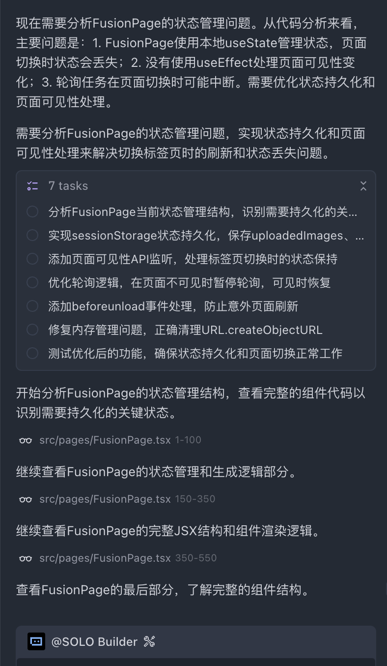 运行了很久之后,基本改完,图片融合生成后,出错,让 TRAE 继续分析。