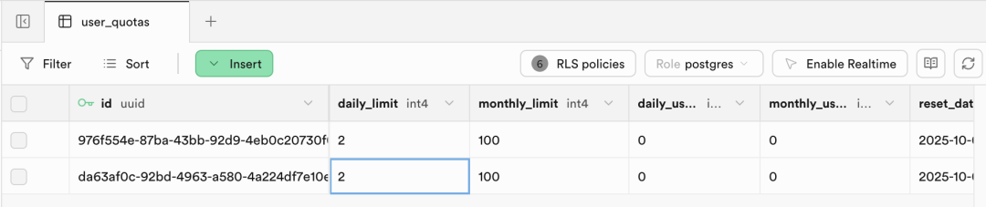 AI 分析 LOG 显示 代码使用了错误的表 user\_usage\_records , 而不是 user\_quotas 表,需要人为干预。