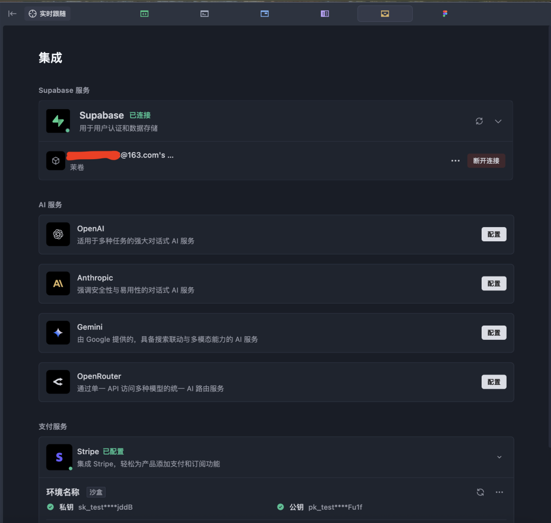 在 TRAE 中,Supabase 和 Stripe 都可以轻松集成**(需到对应的网站注册)** 。