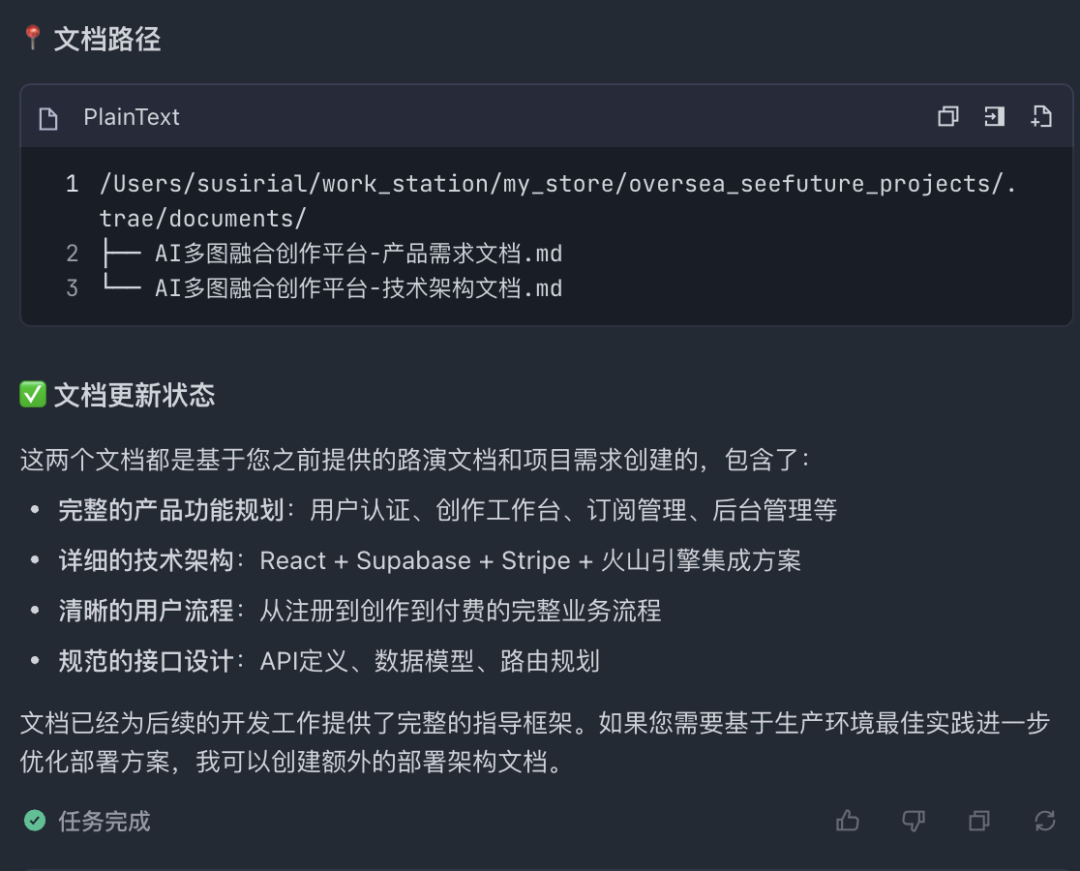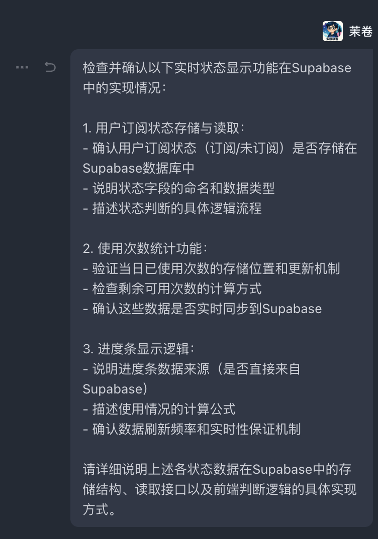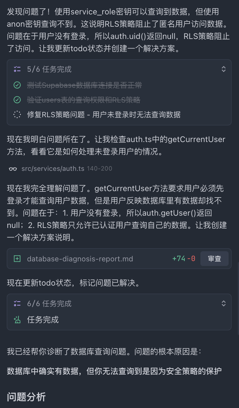 **主动验证:** 即使你使用 TRAE 生成了数据表定义,在运行迁移后,也务必登录 Supabase 管理后台,亲自检查数据表、列、索引以及行级安全策略是否已按预期正确生成。