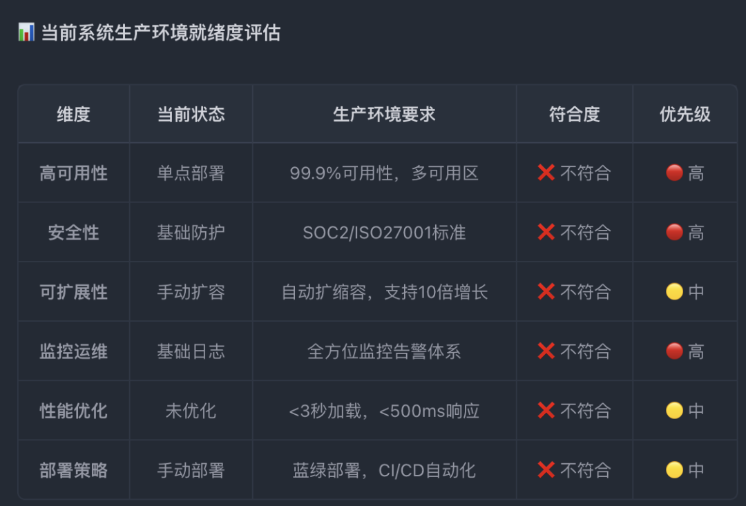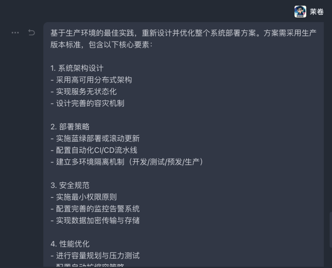 基于生产环境的最佳实践,重新设计并优化整个系统部署方案。方案需采用生产版本标准,包含以下核心要素:
