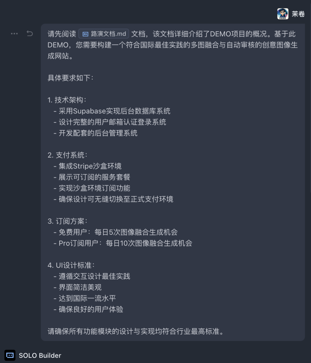 我们先构建一个项目提示词,让 TRAE 先给出第一个设计。