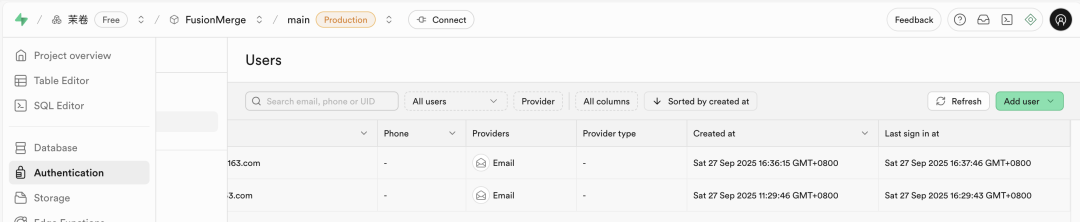 数据迁移命令,修改的是云端的 Supabase,修改后需要到数据库查看,如图所示红线部分,新增的 2 个表。