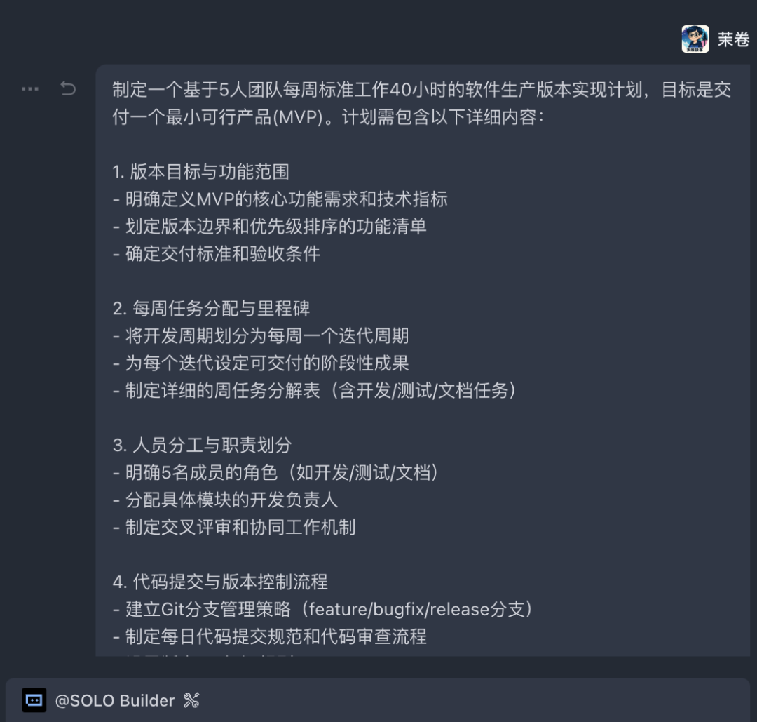 让 TRAE 制定 5 人团队 产出 MVP 软件计划。