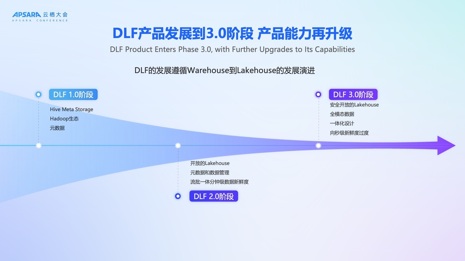 随着 Lakehouse 架构逐步取代传统 Hadoop 体系,DLF 在 2.0 阶段完成了关键转型:从元数据管理工具升级为面向 Lakehouse 的开放元数据与数据管理平台。该阶段支持 Paimon、Iceberg 等主流湖格式,实现流批一体、分钟级数据新鲜度,并帮助用户平滑迁移至 Lakehouse 架构。