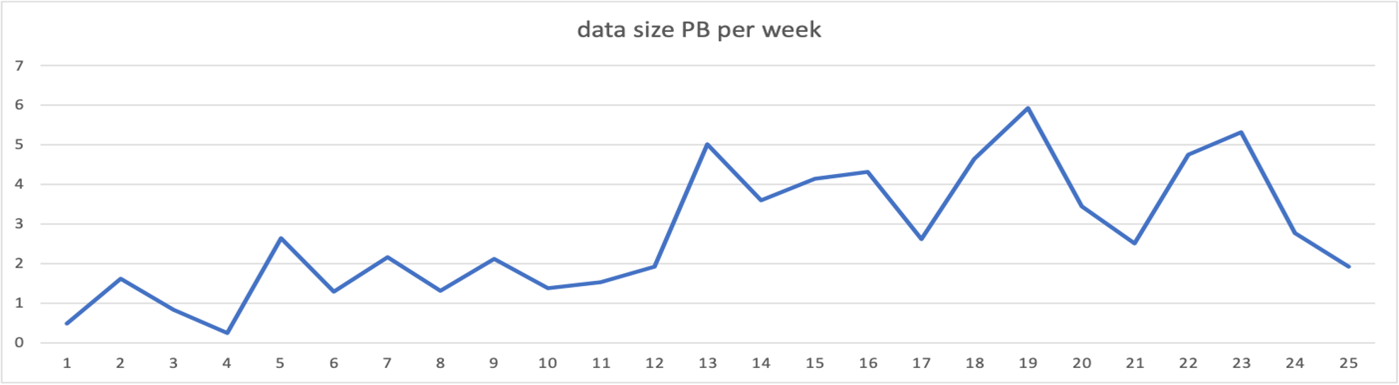迁移速度要求高: 6 个月迁移 50PB,不出任何差错的情况下,至少每周迁移 2PB。因此每周 3PB 才有较大容错空间