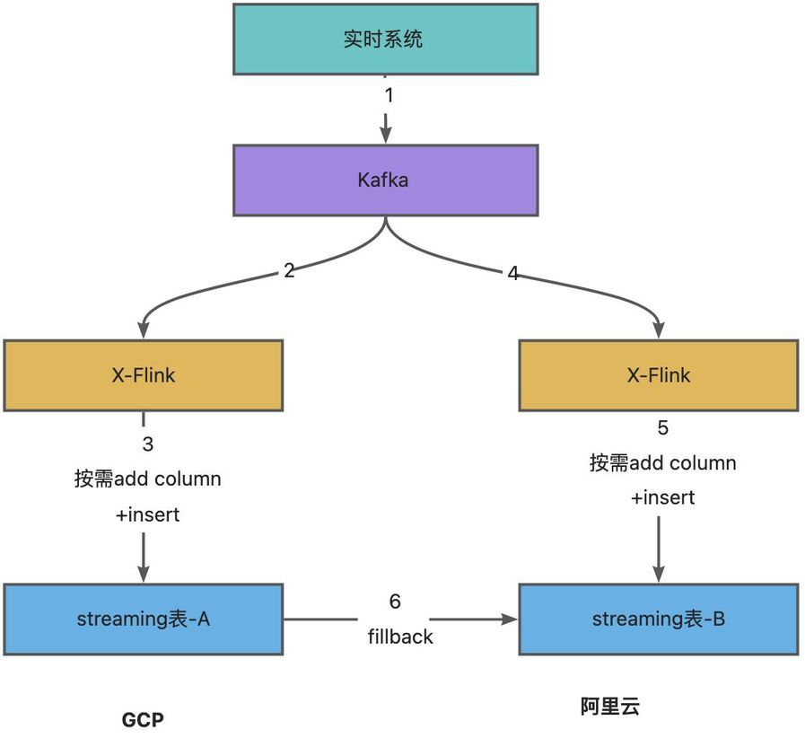 客户自建了一个 X-Flink 系统(类似 Flink 的流计算系统),根据上游 kafka 的 message,按需执行 add column。