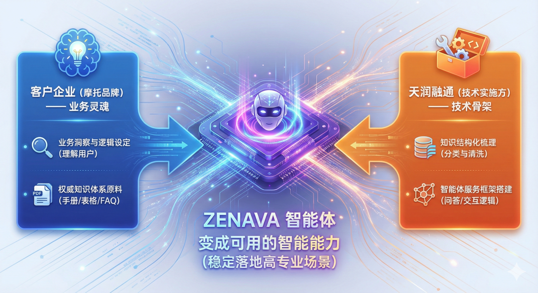 国内一家头部摩托车品牌就长期面临这样的问题。直到与天润融通合作,引入 ZENAVA 重构售后服务流程后,机器人才真正开始“顶上来”——上线以来,ZENAVA 平均有效会话拦截率稳定在 65%,整体进线拦截率达到 50%,在不牺牲体验的前提下,AI 接走了一半的工作,显著缓解了人工压力,也降低了售后成本。