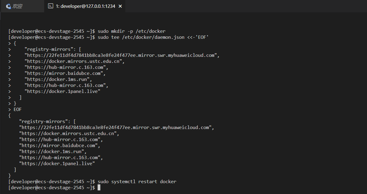 配置镜像加速。