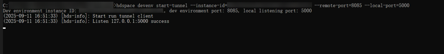 本地创建隧道,使用本地端口(这里使用 5000,可变更)映射云开发环境的 8085 端口,用于通过本地访问云开发环境部署的 OpenHands。