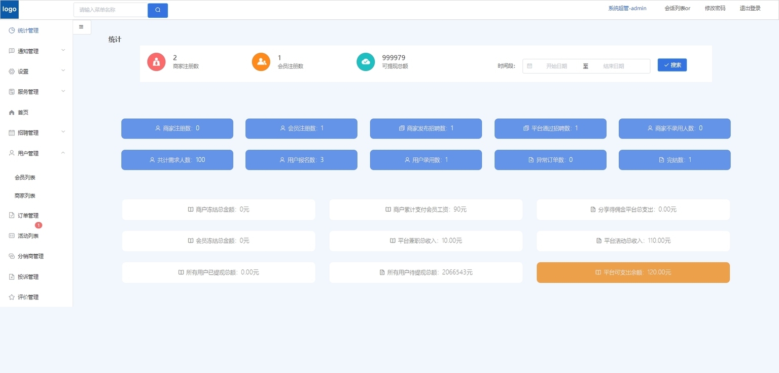 提供数据汇总和分析功能,帮助用户了解系统运行状态和用户行为模式,为招聘业务决策提供数据支撑。