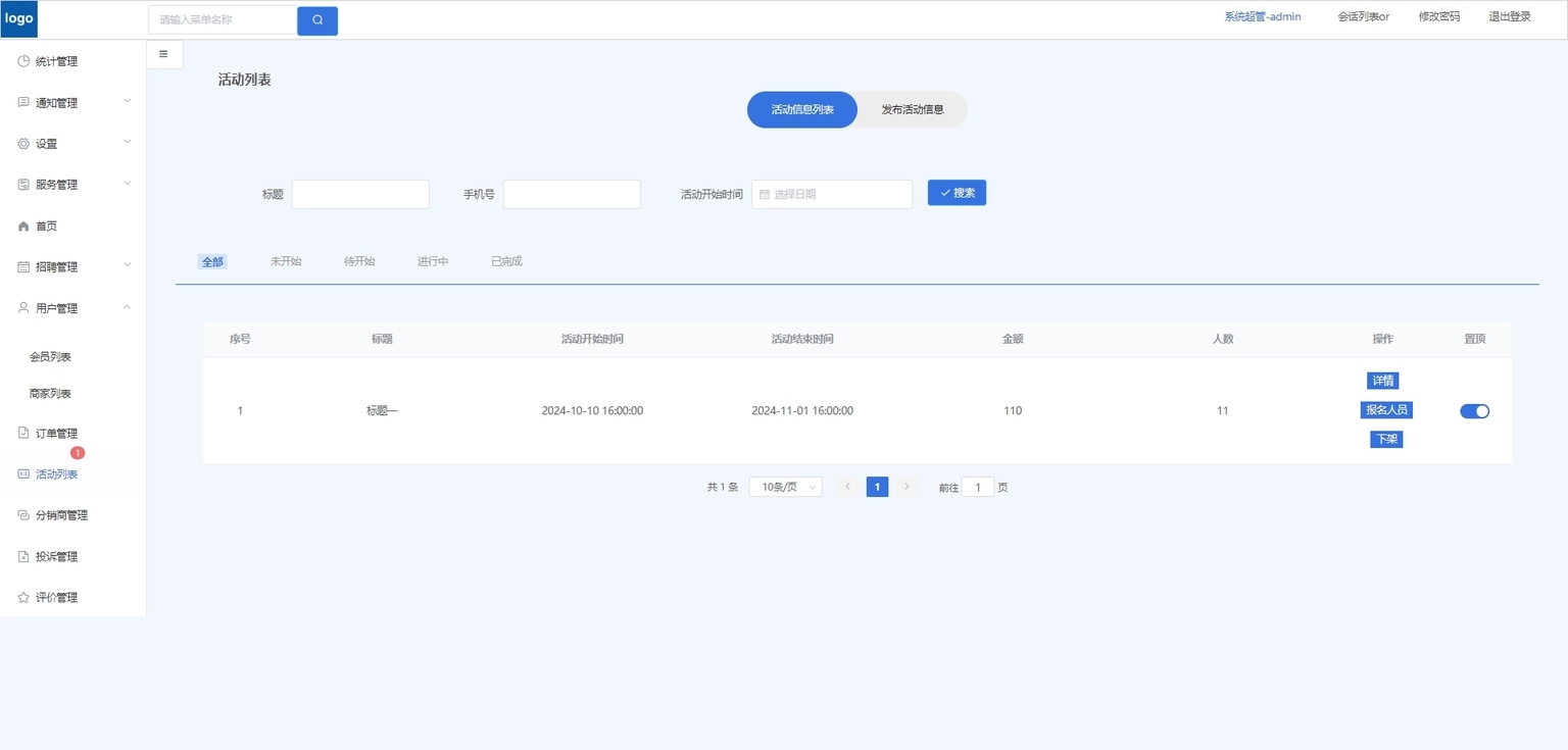 展示所有正在进行的活动,包括活动详情和参与方式,提升平台活动的曝光度与用户参与度。