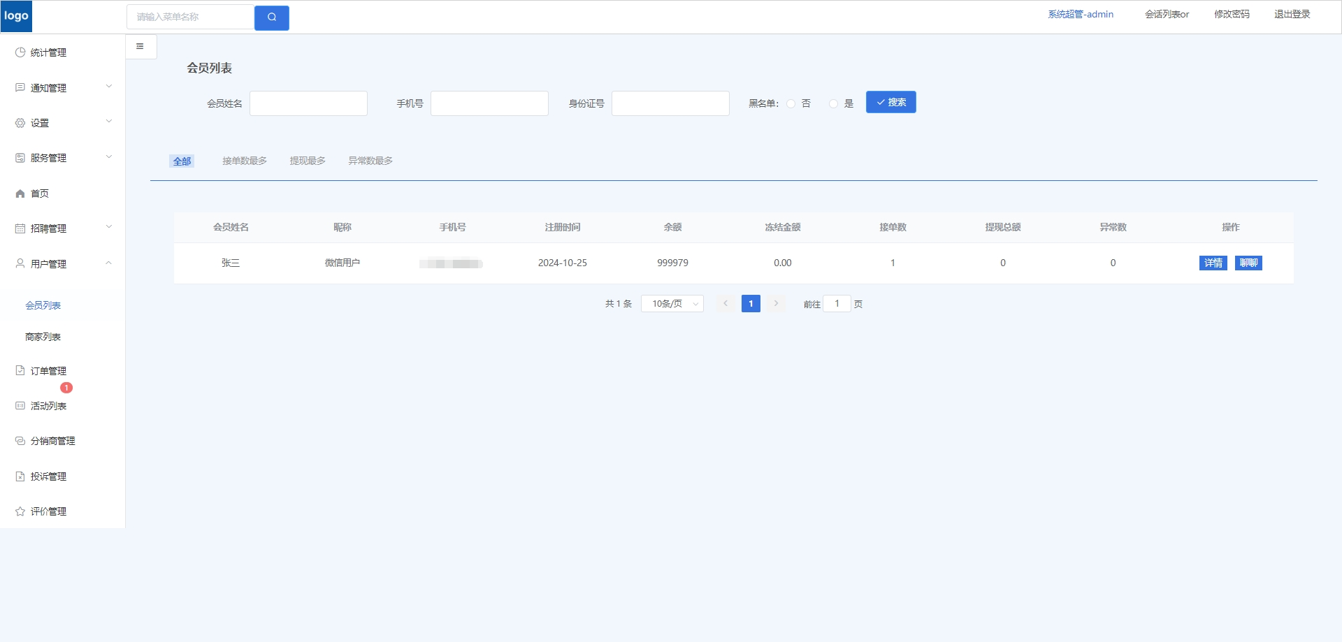 会员列表:展示所有会员用户的信息,包括会员等级、积分和活跃度,实现会员用户的集中化管理与运营。