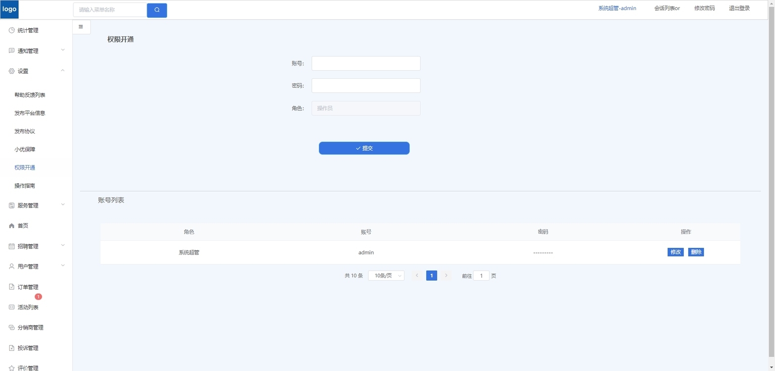 权限开通:管理用户权限,包括权限的分配、修改和撤销,实现平台权限的精细化管控。