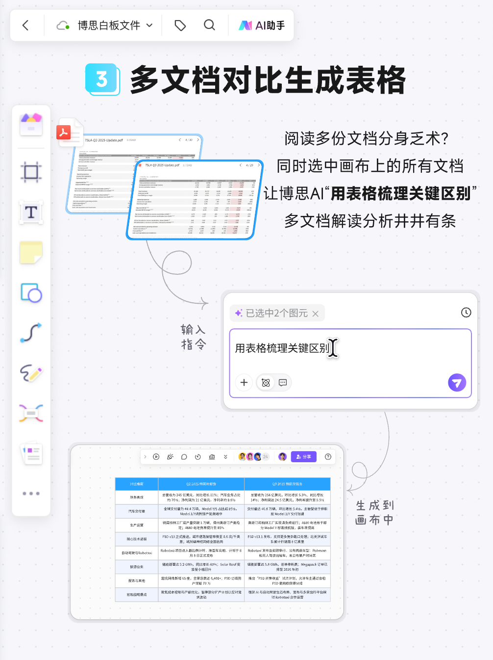 boardmix AI 解决方案:多选文档 -> 智能对比表格