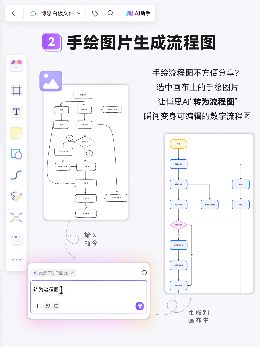 boardmix AI 解决方案:手绘图片 -> 可编辑数字流程图