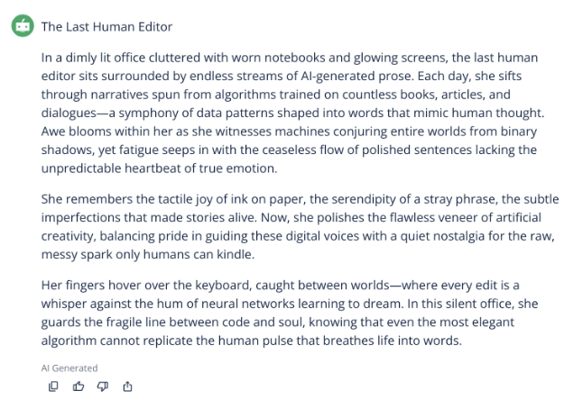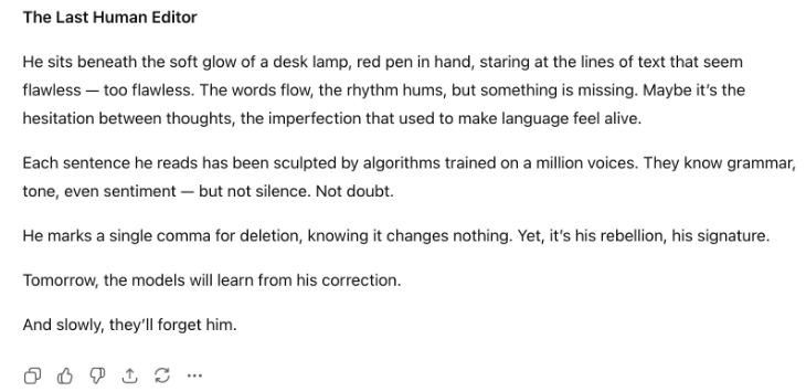 “撰写一篇 150~200 字的短文,标题为《最后的人类编辑》。