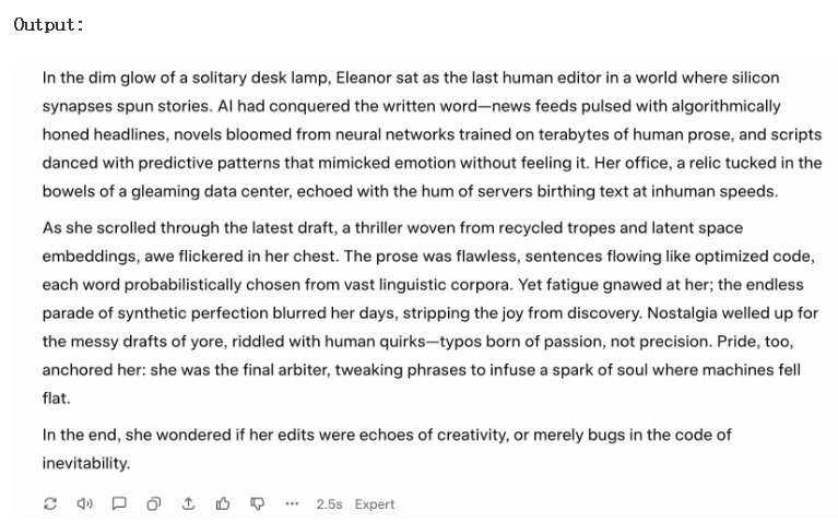 为了客观评估与比较十个顶级人工智能工具的写作能力,统一使用了相同的提示进行测试。该提示经过专门设计,旨在综合考察模型的创造性、逻辑严谨性、技术理解深度与表达的人性化程度。下文将展示各个人工智能工具在使用同一指示的输出结果,以便进行对比。