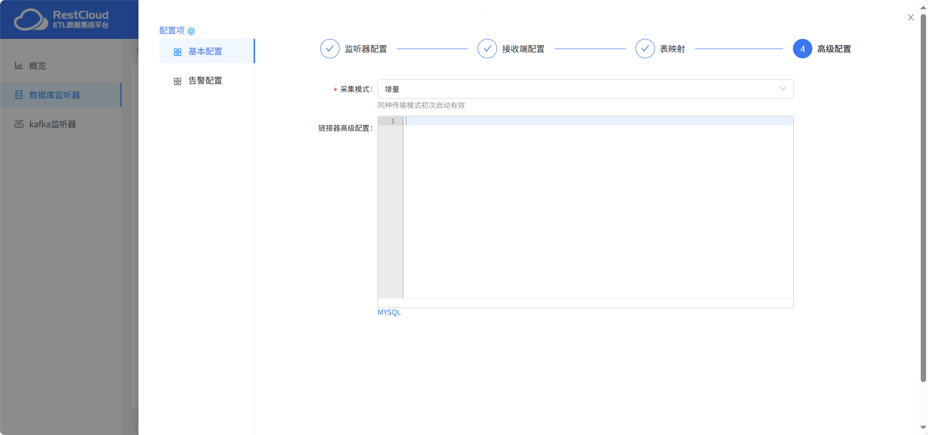 接收端配置有四种数据传输模式,这里选择直接传输到目标库中,如果需要对数据进行额外的处理可以选择传输到 ETL 流程里进行数据清洗,其他的可以去官网文档进行了解。