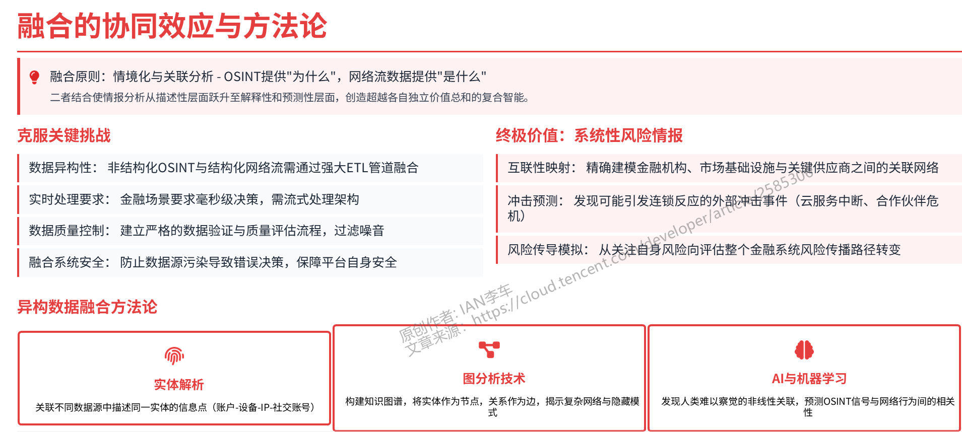 网络安全风险: 数据融合系统本身也可能成为新的攻击目标。如果其中一个数据源(如某个 OSINT 供应商)被污染,错误或恶意的数据就可能进入整个分析生态系统,导致错误的决策和潜在的损失。因此,保障数据融合平台自身的安全至关重要。