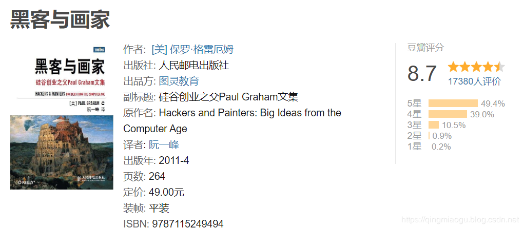这是一本能引发技术人思考的佳作,真正意义上的黑客精神、创业、编程语言,是这本技术散文集的三个主题。阮一峰的翻译很到位,很喜欢他的译文。