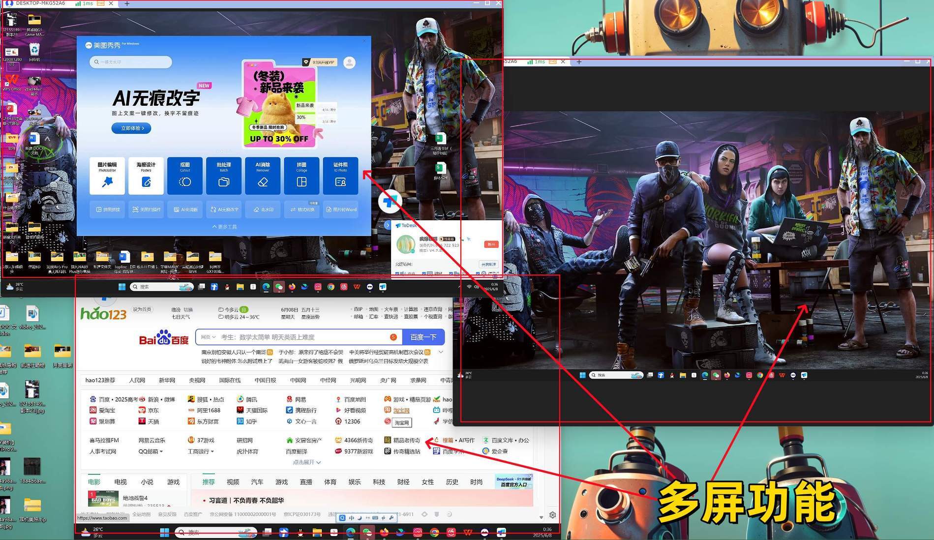ToDesk 的虚拟屏功能最多可以为被控制电脑创建 3 个虚拟桌面(虚拟桌面分辨率和物理屏幕保持一致),三个创建的虚拟桌面可以独立运行不同的任务,且互不影响。
